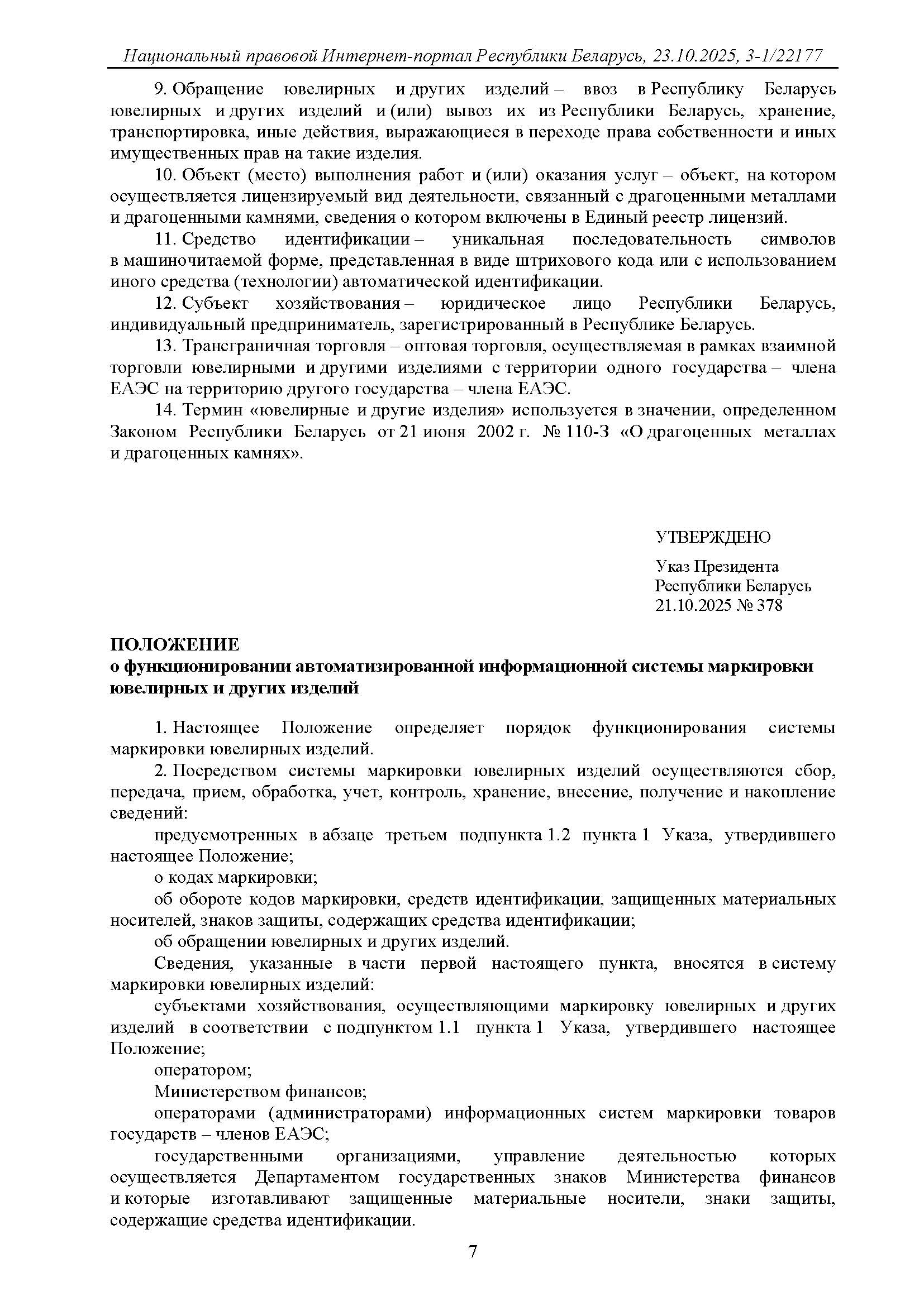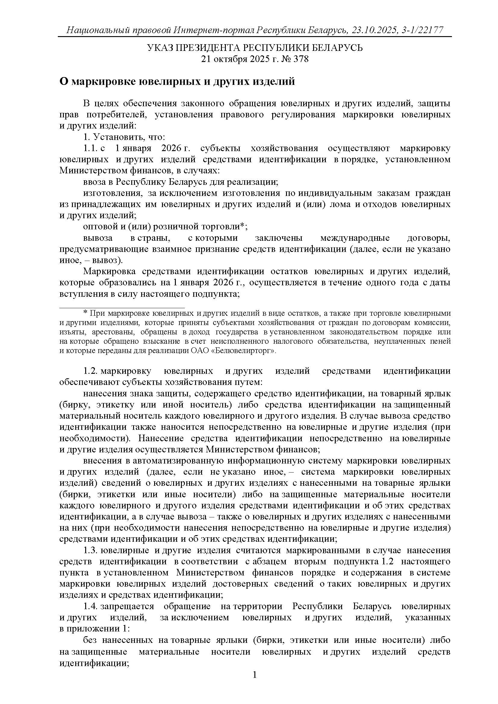 Маркировка ювелирки с 1 января 2026 г.: Указ № 378