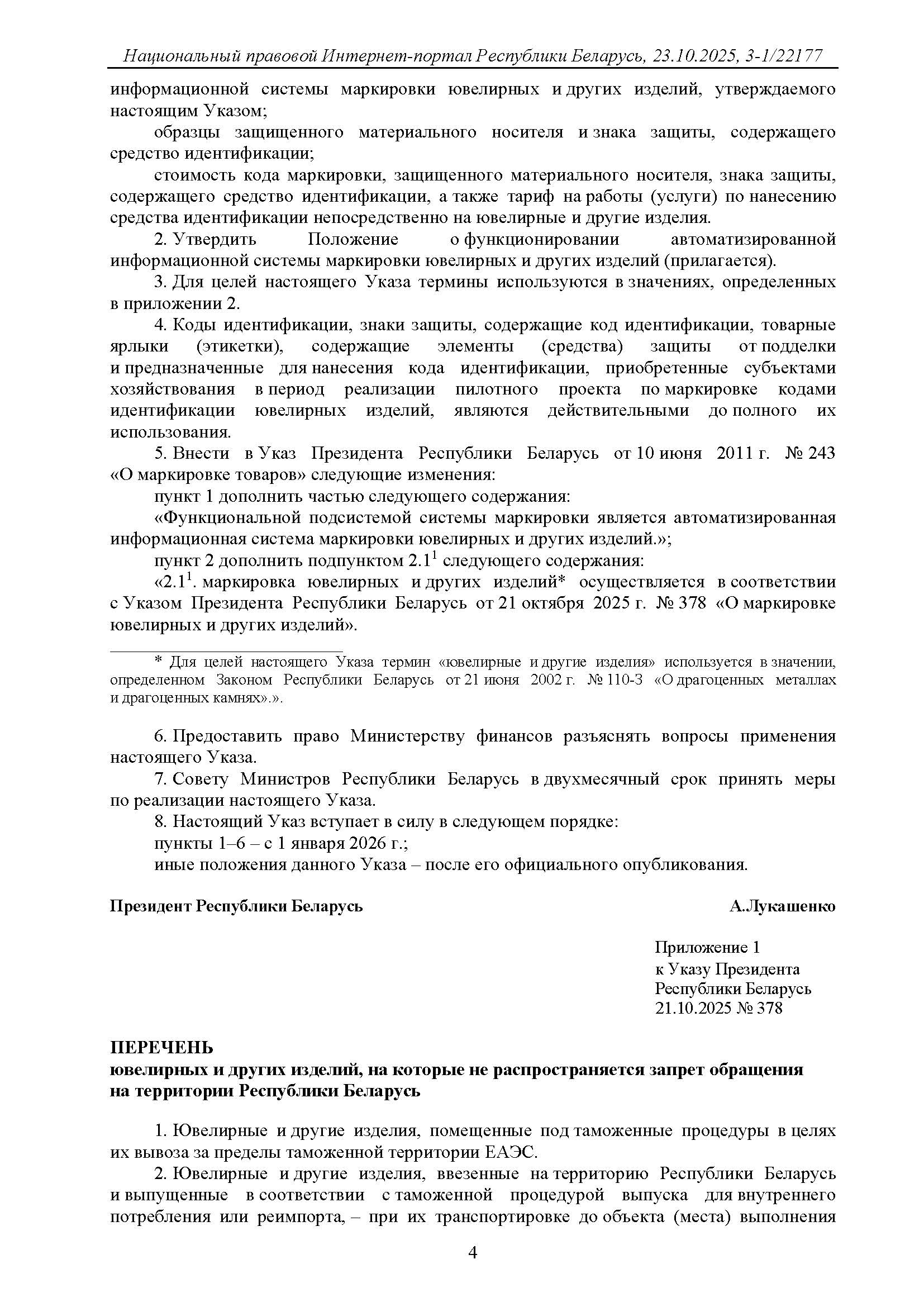Маркировка ювелирки с 1 января 2026 г.: Указ № 378